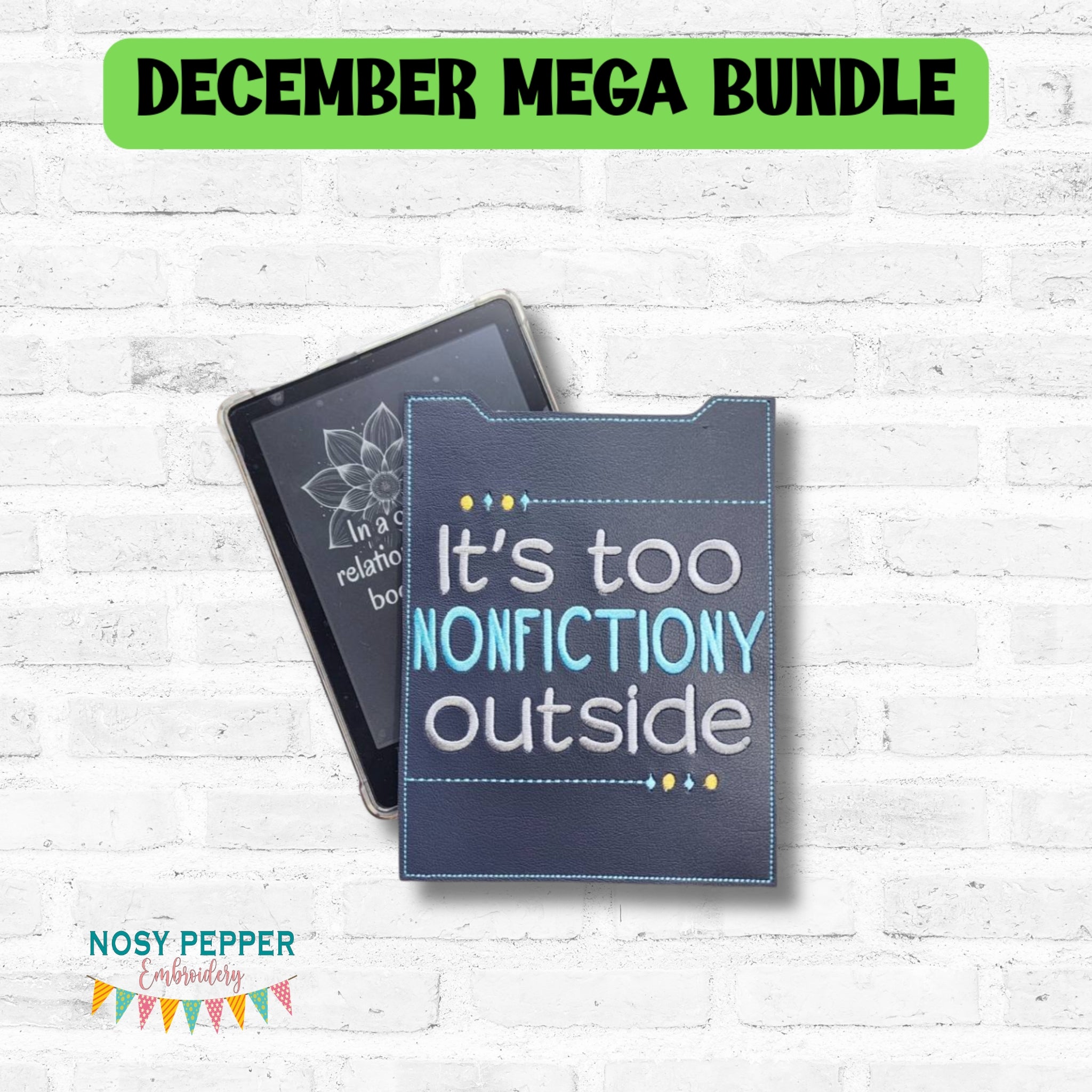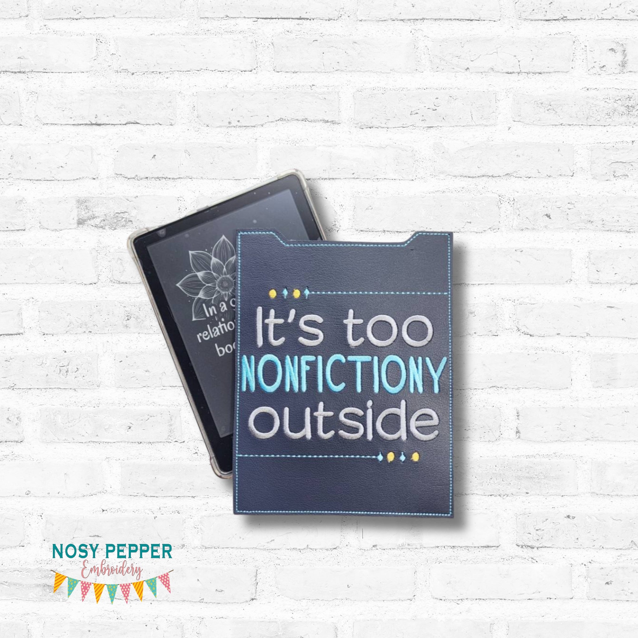Nonfictiony reader sleeve (3 sizes included) machine embroidery design DIGITAL DOWNLOAD