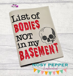 List of bodies not in my basement notebook cover (2 sizes available) machine embroidery design DIGITAL DOWNLOAD