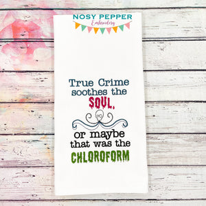 True crime soothes the soul, or was that the chloroform machine embroidery design (4 sizes included) DIGITAL DOWNLOAD